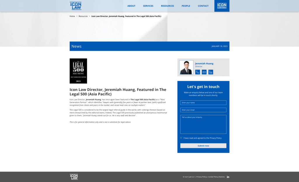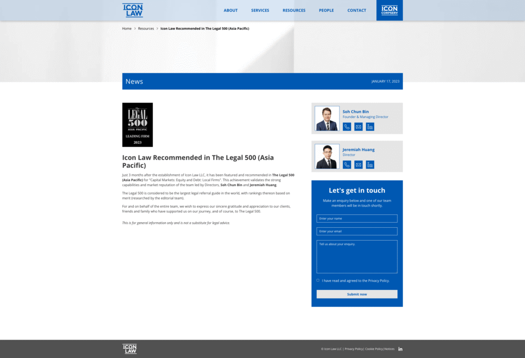 Icon: Ranked in Legal 500 Asia-Pacific 2023