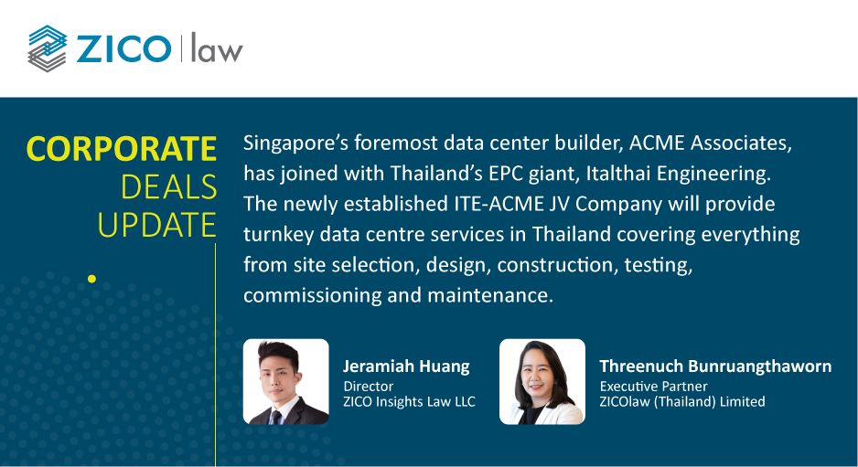 01.03.2022ZICO: Advised Singapore’s Leading DC Builder, ACME Associates, in JV with Thailand Conglomerate, Italthai