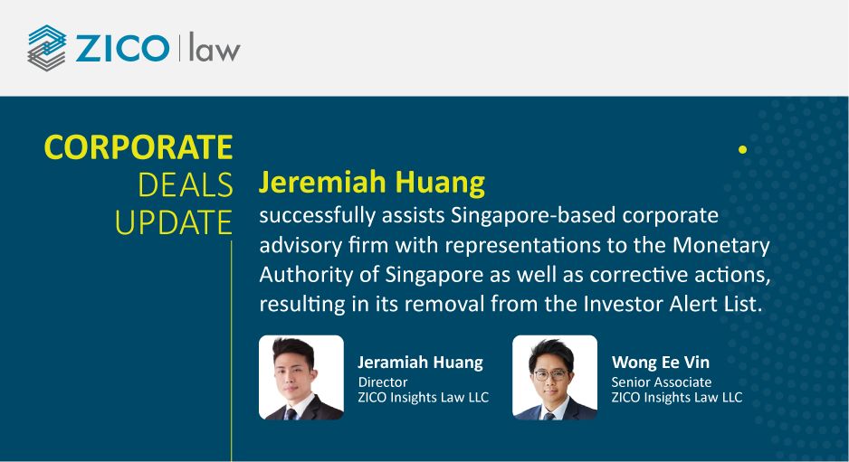 02.02.2022ZICO: Successfully Assisted a Singapore-based Corporate Advisory Firm in Getting Off the Investor Alert List