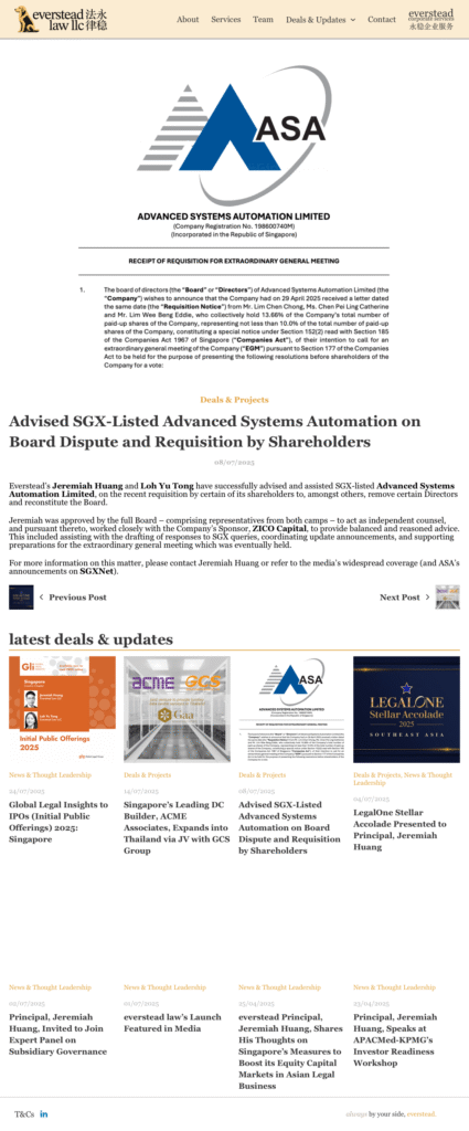 everstead: Advised SGX-Listed Advanced Systems Automation on Board Dispute and Requisition by Shareholders