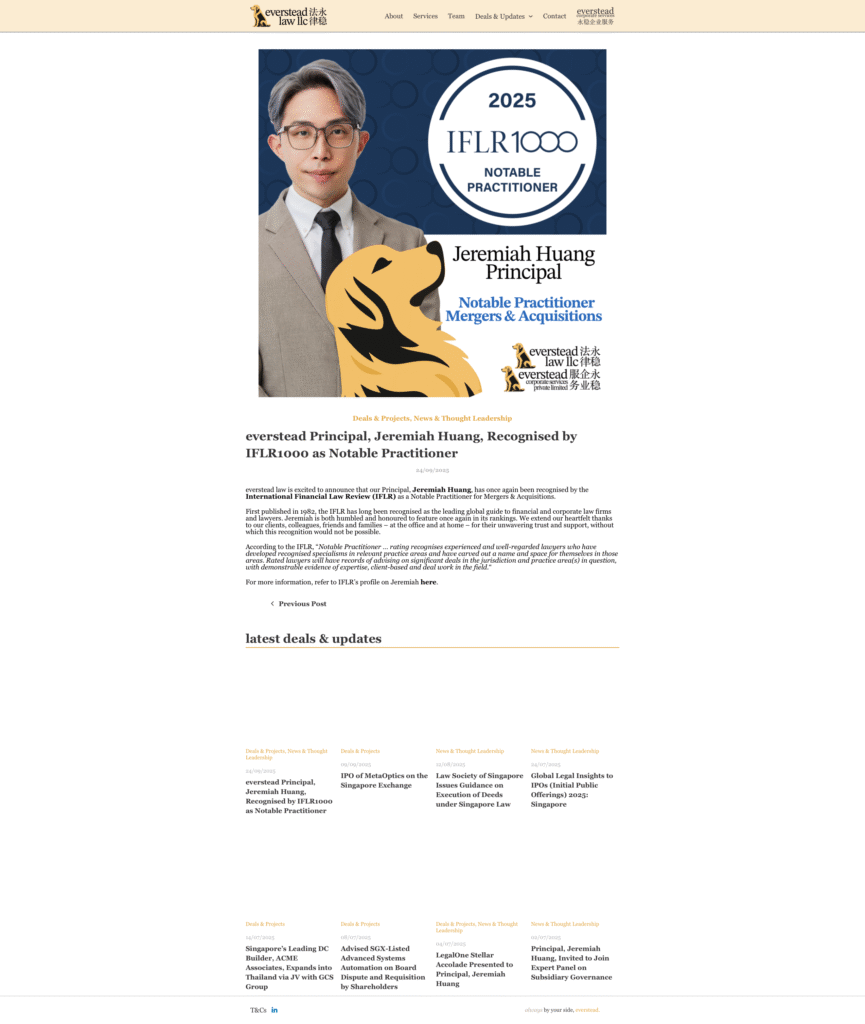 everstead: Recognised by IFLR as Notable Practitioner for M&A