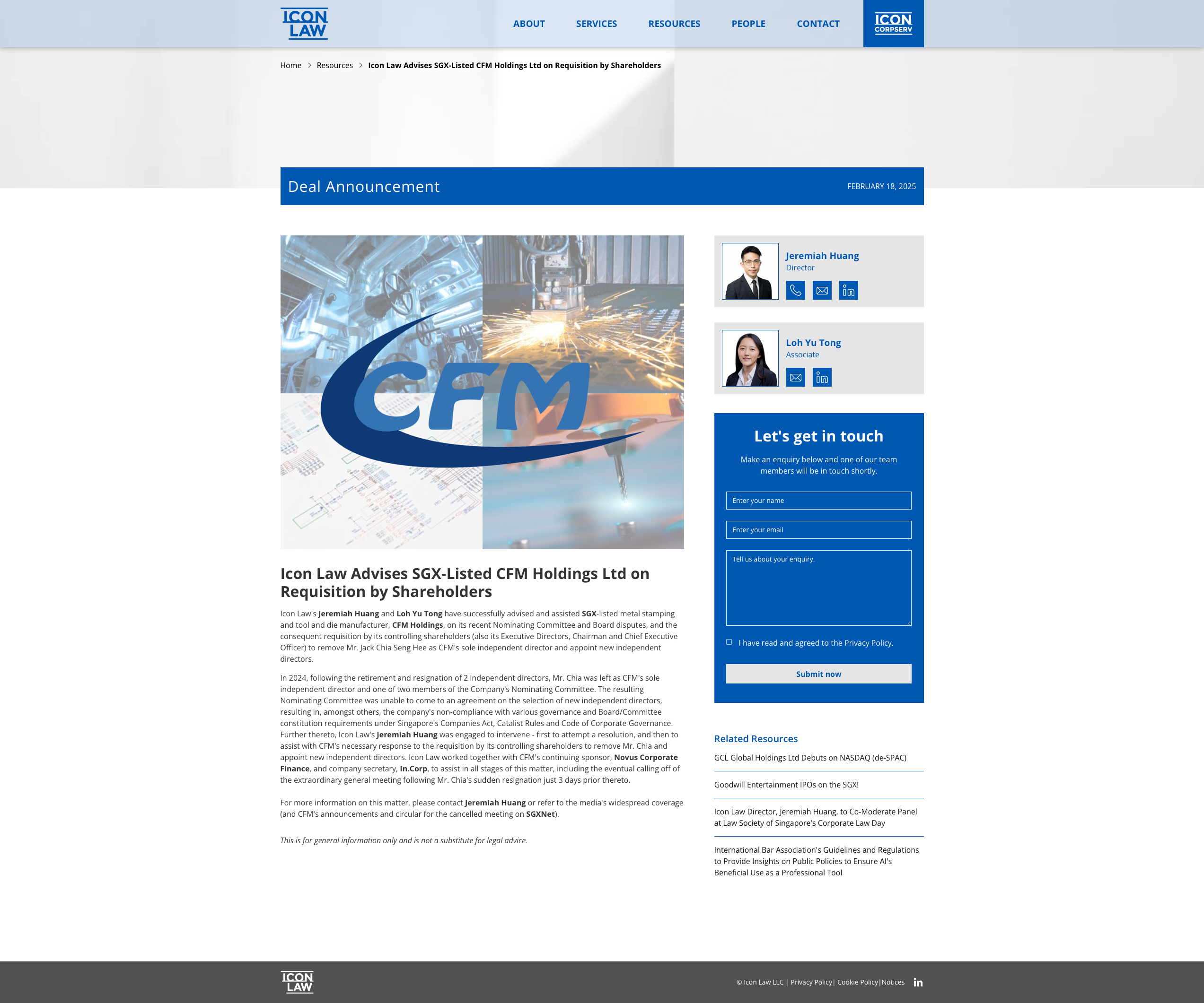 Icon: Advised SGX-Listed CFM Holdings on Requisition by Shareholders