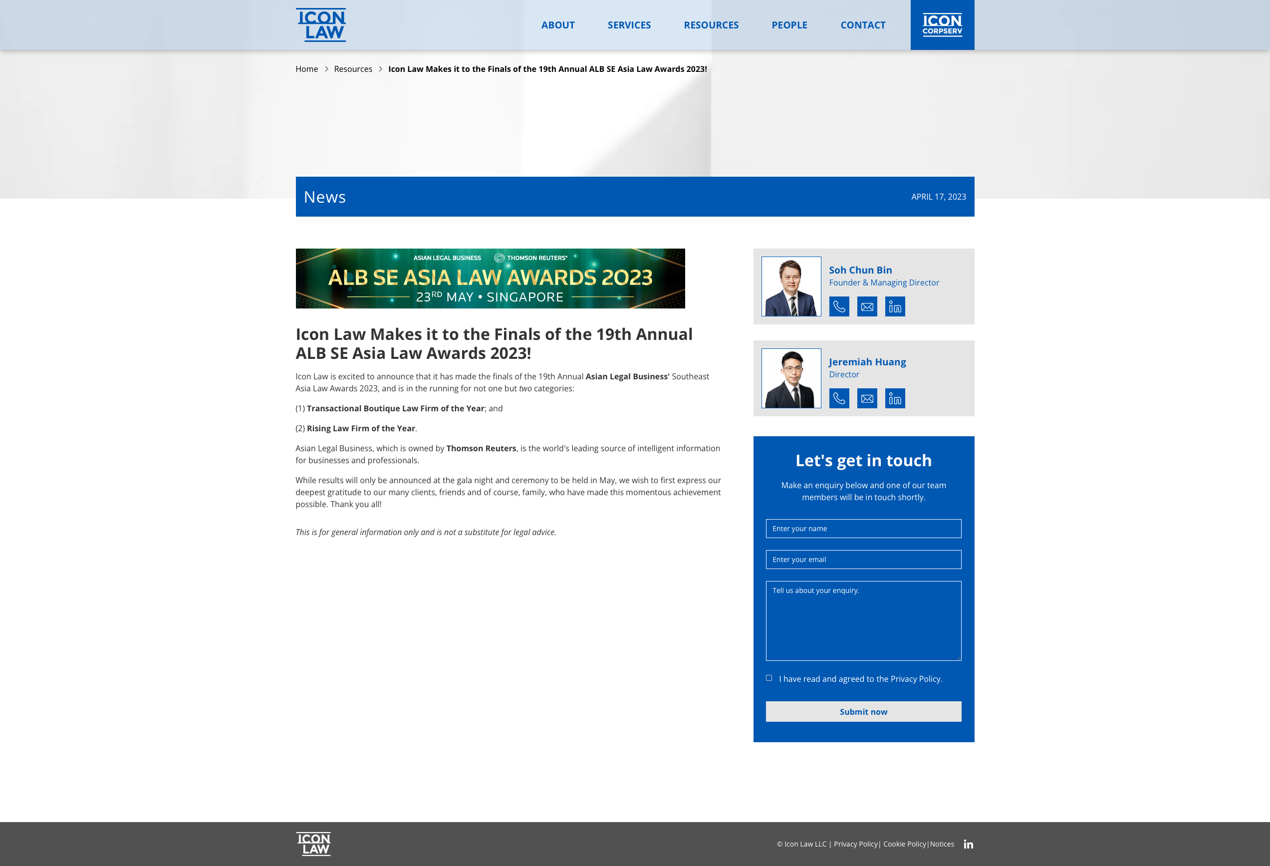 Icon: Made Finals of 19th Annual Asian Legal Business SE Asia Law Awards 2023