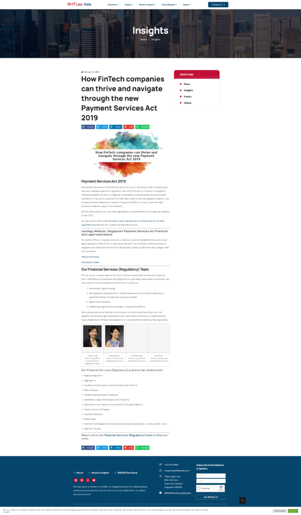 Part of one of the first teams advising on Singapore's Payment Services Act 2019.News, Thought Leadership