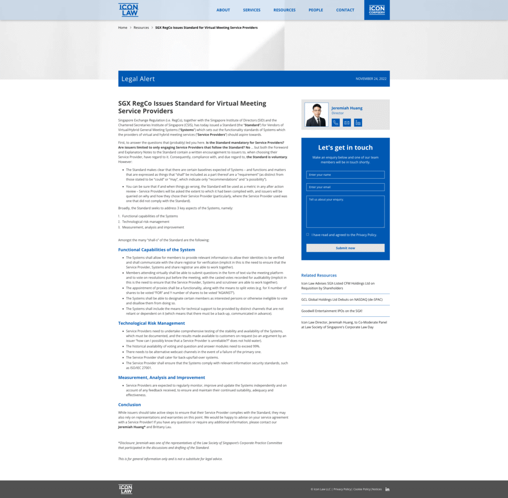 An overview of the Standard for Virtual Meeting Service Providers promulgated by the Singapore Exchange Regulation, together with the Singapore…News, Thought Leadership