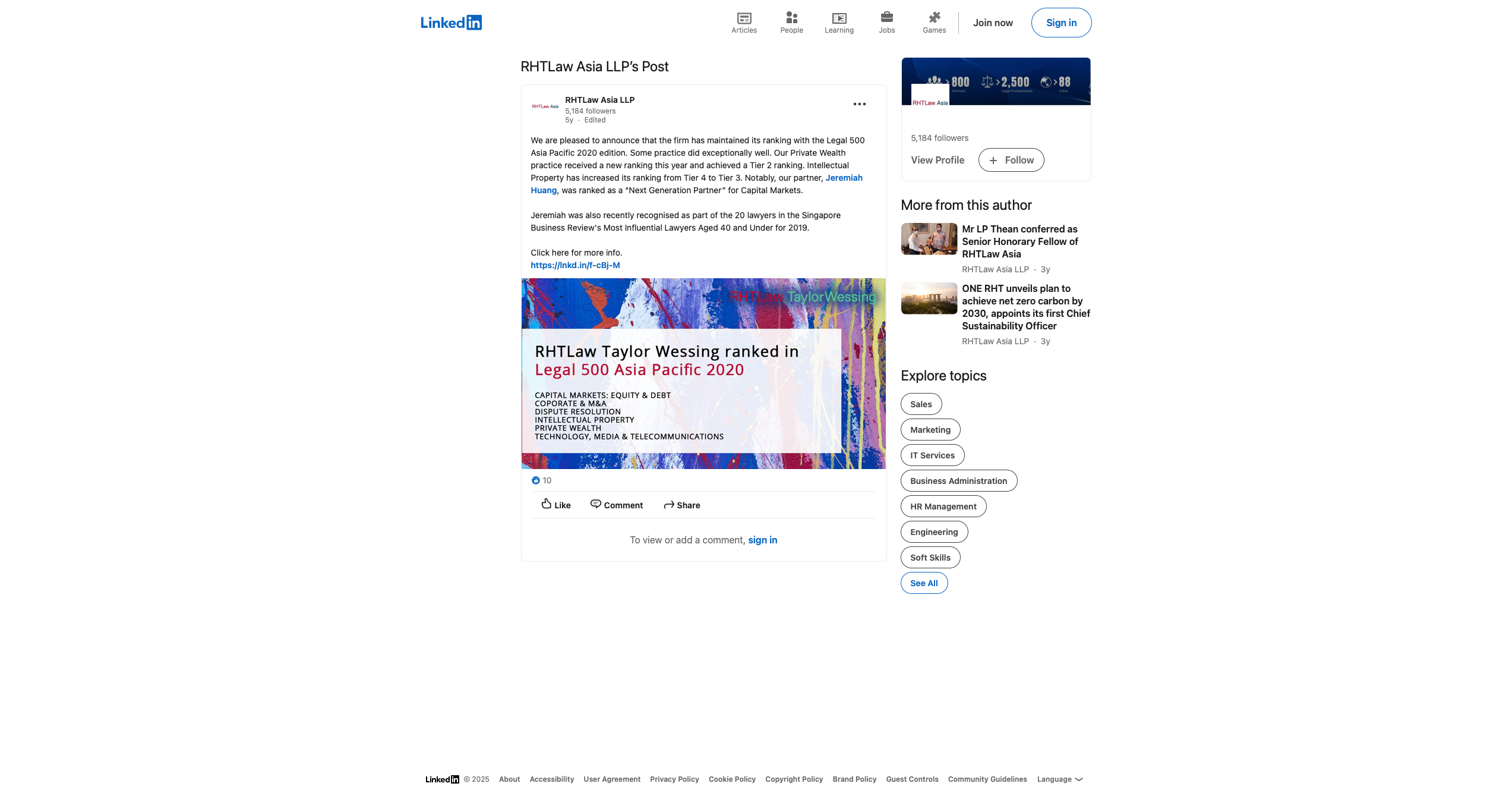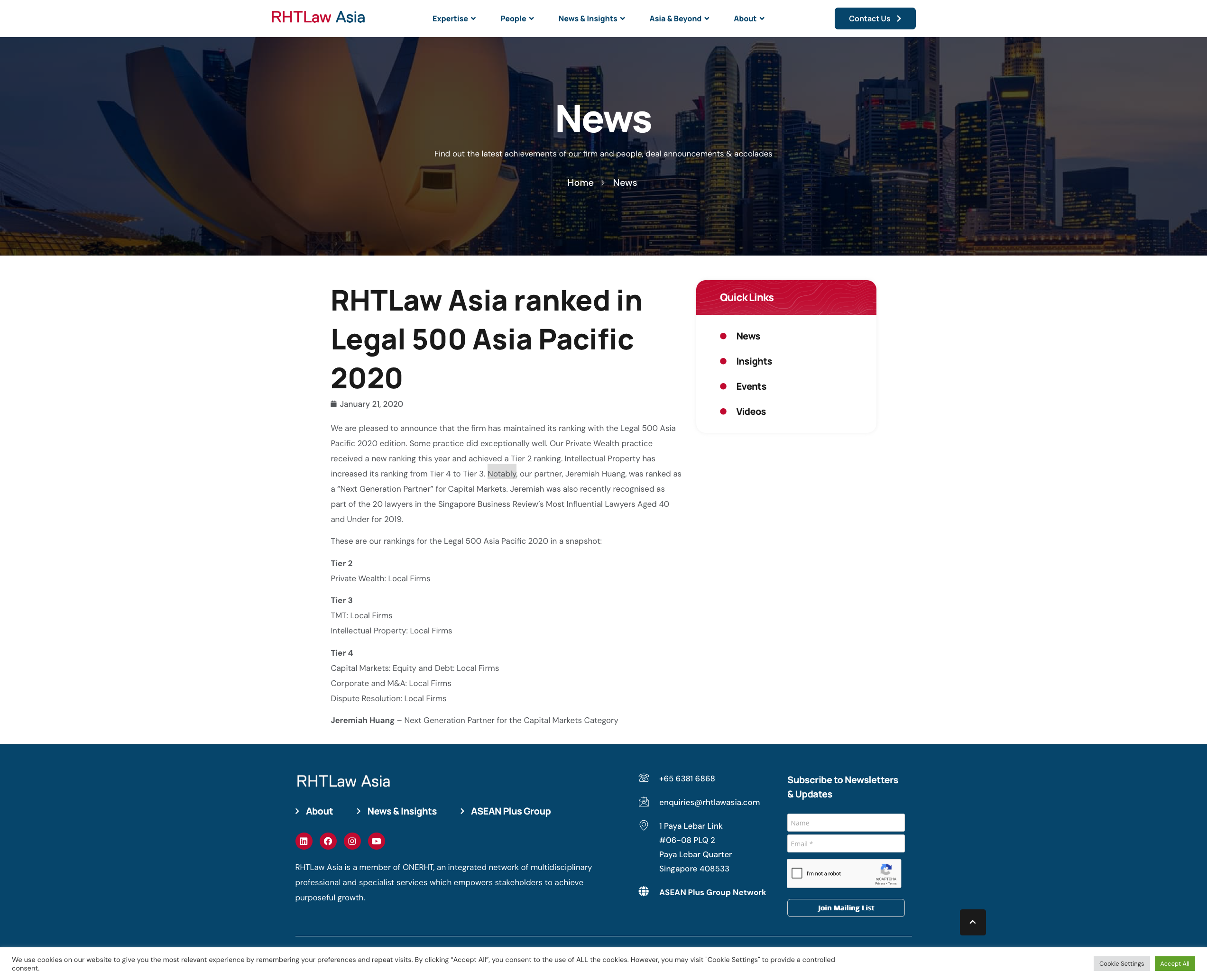 RHTLaw: Ranked in Legal 500 Asia-Pacific 2020