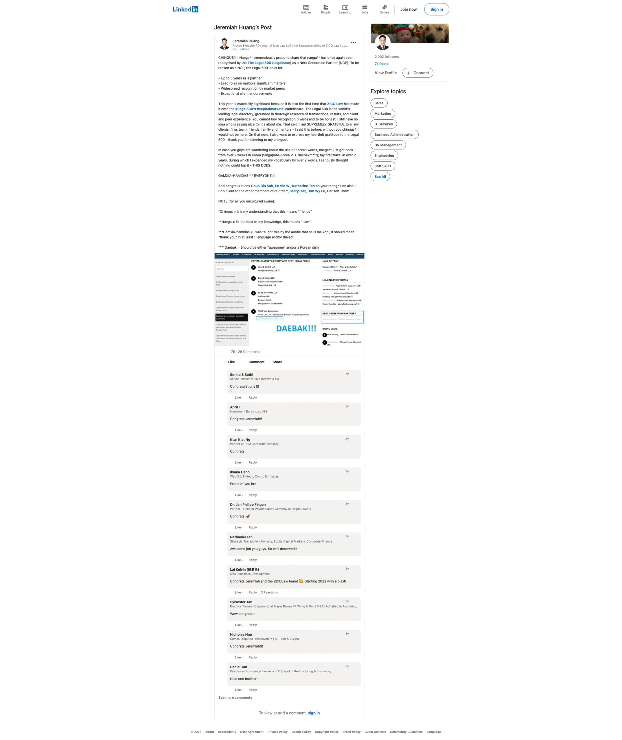 Apart from firm and practice rankings, I maintained my ranking as a Next Generation Partner for Capital Markets (Domestic).